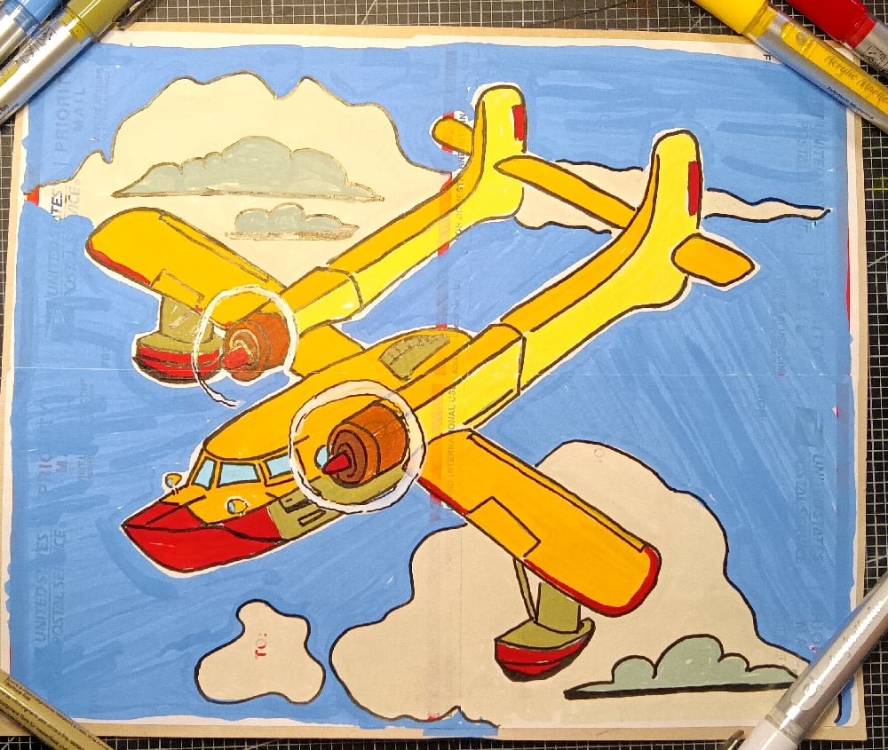 Acrylic marker on (4) 228 USPS stickers. Unframed (affixed to newsprint paper)